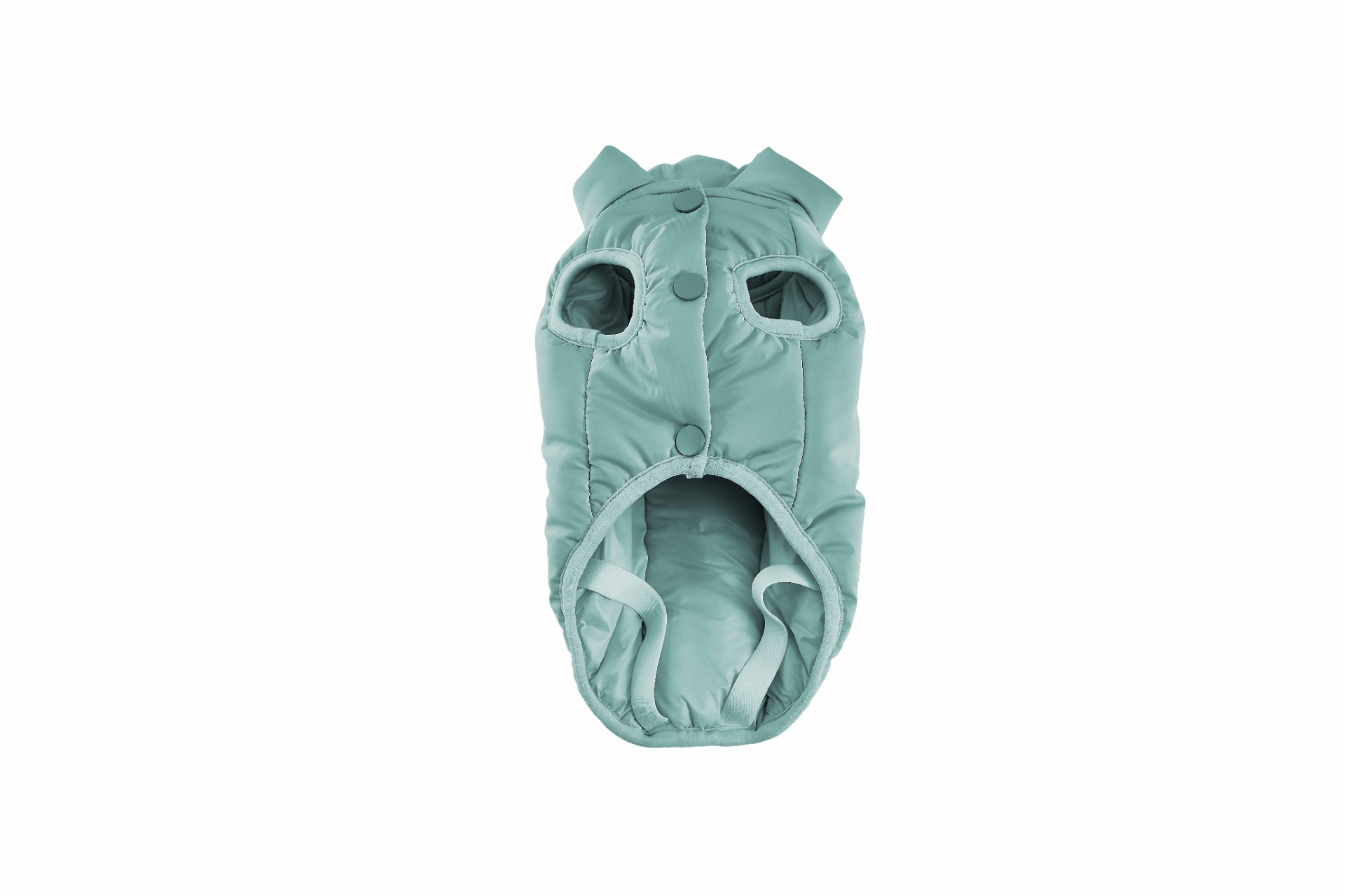 Abrigo impermeable para perro con diseño acolchado, ligero y muy cómodo, ideal para protegerlo del frío y la lluvia. Incorpora cierre frontal con corchetes para un ajuste rápido y seguro, además de gomas elásticas traseras que garantizan sujeción. Disponible en varios colores modernos, combina funcionalidad y estilo para paseos en cualquier clima.