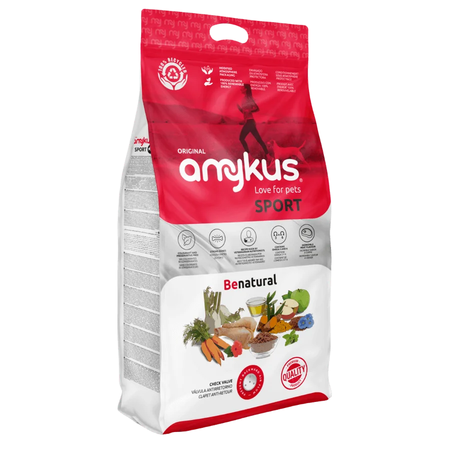 AMYKUS ORIGINAL SPORT es la elección perfecta para perros activos que necesitan un apoyo nutricional de calidad para seguir rindiendo al máximo. Con su fórmula rica en ingredientes naturales, tu perro disfrutará de todos los beneficios de una alimentación equilibrada que favorece su energía, salud y bienestar. Proporciona a tu fiel compañero el mejor alimento para que siga disfrutando de su actividad física de forma saludable.
