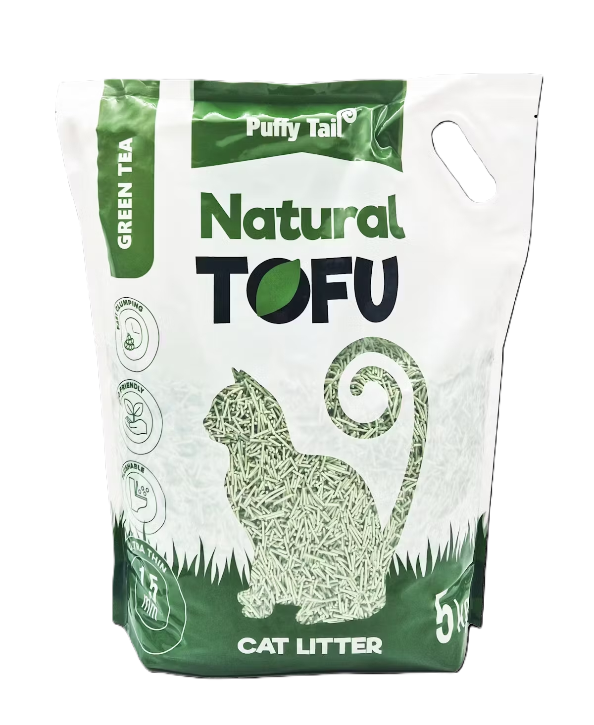 PUFFY TAIL es desechable por el inodoro, fácil de recoger y su rápida absorción protege al gato y a la caja de arena del mal olor a orina. La arena para gatos de PUFFY TAIL se produce con soja natural de calidad alimentaria que no contiene productos químicos ni colorantes sintéticos, por lo que es segura para los gatos y para el hogar en general.