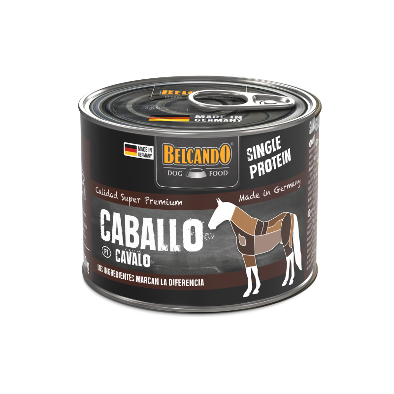 BELCANDO Single Protein Caballo es una carne enlatada pura y de alta calidad, con caballo como única fuente de proteína y totalmente libre de aditivos. En combinación con un complemento alimenticio como BELCANDO Mix it GF, constituye la fuente de proteína ideal para dietas de eliminación, con las cuales puede identificar a qué tipos de carne puede ser sensible su perro. Las variedades Single Protein también pueden utilizarse para una alimentación prolongada en casos de intolerancia alimentaria – siempre en combinación con BELCANDO Mix it GF.3