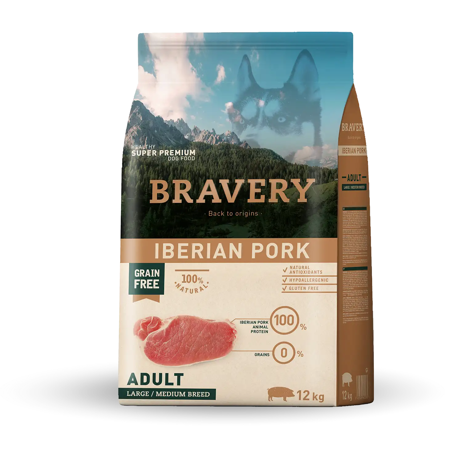 BRAVERY DOG IBERIAN PORK ADULT LARGE/MEDIUM BREEDS 4kg.
