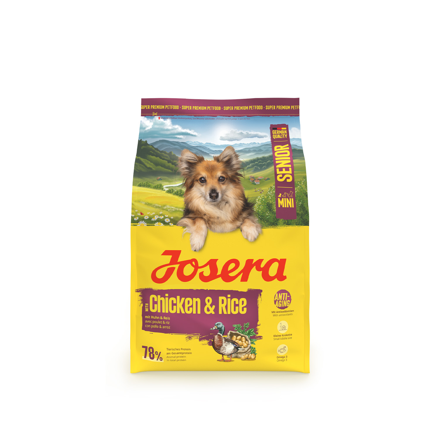¿Un efecto antienvejecimiento directamente del cuenco? Con nuestro Josera Mini Senior Chicken & Rice, puedes alimentar a tu amigo de cuatro patas de mayor edad exactamente eso: el pienso seco para perros de mayor edad tiene una receta sin gluten que está óptimamente adaptada a las necesidades delos perros mayores: valiosos antioxidantes como la vitamina E, la vitamina C y la taurina ayudan a contrarrestar el envejecimiento celular, mientras que la L-carnitina ayuda a prevenir la pérdida muscular relacionada con la edad. Además, el contenido reducido de fósforo puede aliviar los riñones. El aceite de salmón proporciona valiosos ácidos grasos omega 3 como el DHA y el EPA. Debido a su acción antiinflamatoria, estos desempeñan un papel importante en el cuerpo de tu perro, entre otros, en el sistema inmunitario, la piel y el corazón. Un contenido moderado de energía y minerales se adapta perfectamente a la actividad de los amigos de cuatro patas de mayor edad y también puede aliviar los órganos en la vejez. Gracias al delicioso pollo y al arroz, la comida para perros sin gluten también tiene un sabor súper sabroso... y desaparece rápidamente en la boca en forma de pequeñas croquetas. ¡Que aproveche!