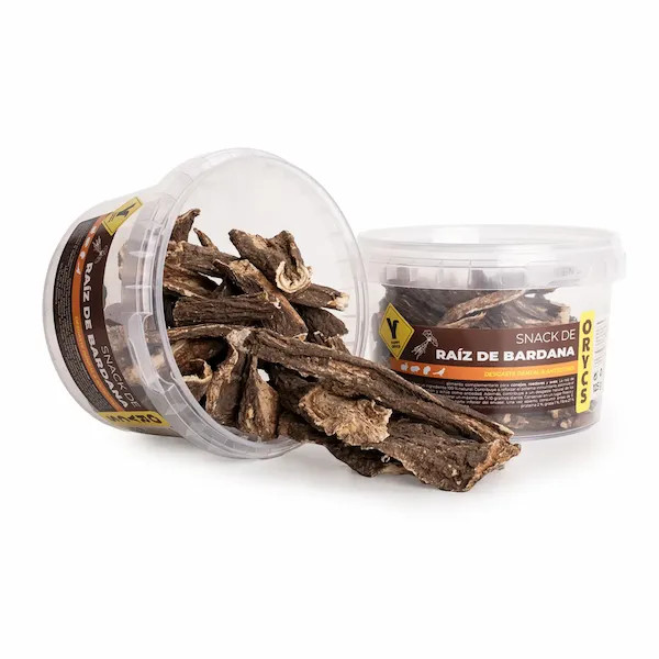 La raíz de bardana ORYCS contribuye a reforzar el sistema inmunitario, estimula el apetito, facilita la digestión y actúa como antiedad. Además, contribuye a un desgaste natural de los dientes.