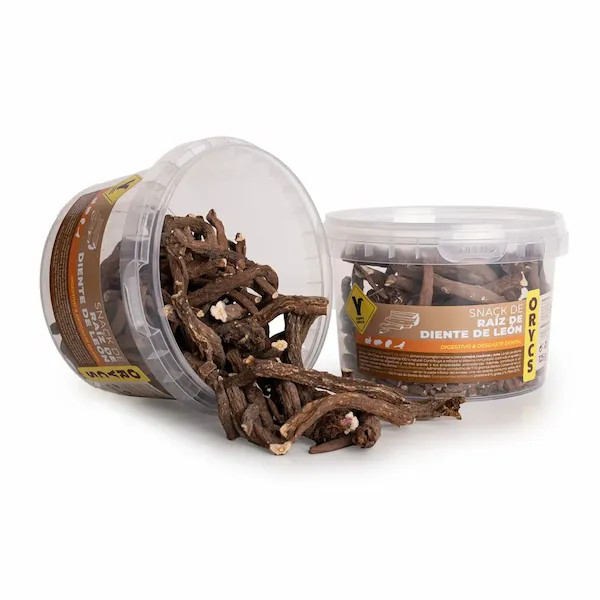 SNACK DE RAÍZ DE DIENTE DE LEÓN: alimento complementario para conejos, roedores y aves. La raíz de diente de león ORYCS es un ingrediente 100 % natural. Contribuye a reforzar el sistema inmunitario. Estimula el apetito y combate problemas digestivos y renales gracias a sus propiedades antioxidantes. Además, contribuye a un desgaste natural de los dientes.