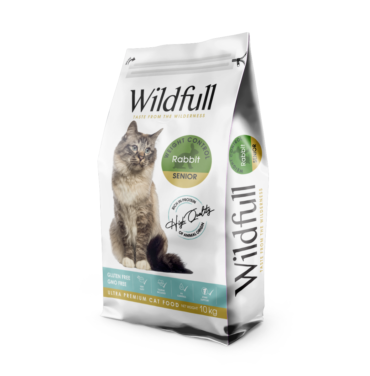 WILDFULL CAT RABBIT SENIOR – CONTROL DE PESO. Apto para gatos mayores de todas las razas. Contiene todos los nutrientes esenciales para una nutrición completa y equilibrada, ayudando a mantener un peso corporal óptimo. AYUDA EN EL CONTROL DE PESO : Una ingesta energética cuidadosamente equilibrada contribuye a mantener un peso corporal saludable en gatos mayores. Las proteínas de conejo son