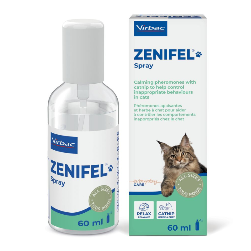 Aerosol formulado con feromonas faciales felinas y hierba gatera. Su fórmula equilibrada proporciona una cura completa que combina higiene, protección y restauración natural. Ayuda los gatos y gatitos a sentirse relajados y cómodas en situaciones que provocan estrés. Estas feromonas imitan las que tu gato produce de manera natural, ayudándolo a sentirse seguro en el hogar. Actúa de manera rápida, ideal para situaciones de estrés puntales dentro y fuera de casa como viajes en transportín o visitas al veterinario. También se utiliza en marcajes por orina y arañazos